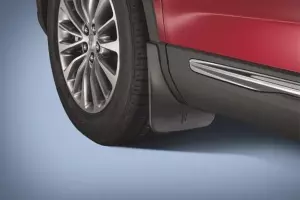 Contoured design complements vehicle lines and gives excellent protection. Heavy-duty plastic construction resists cracking. With Lincoln Logo. Deflect mud, snow and ice away from lower body panels. Protect your vehicles lower body panels from mud, snow and ice with a pair of splash guards. These mud flaps feature contoured design complements your vehicles lines for a perfect fit and excellent protection. Without logo.